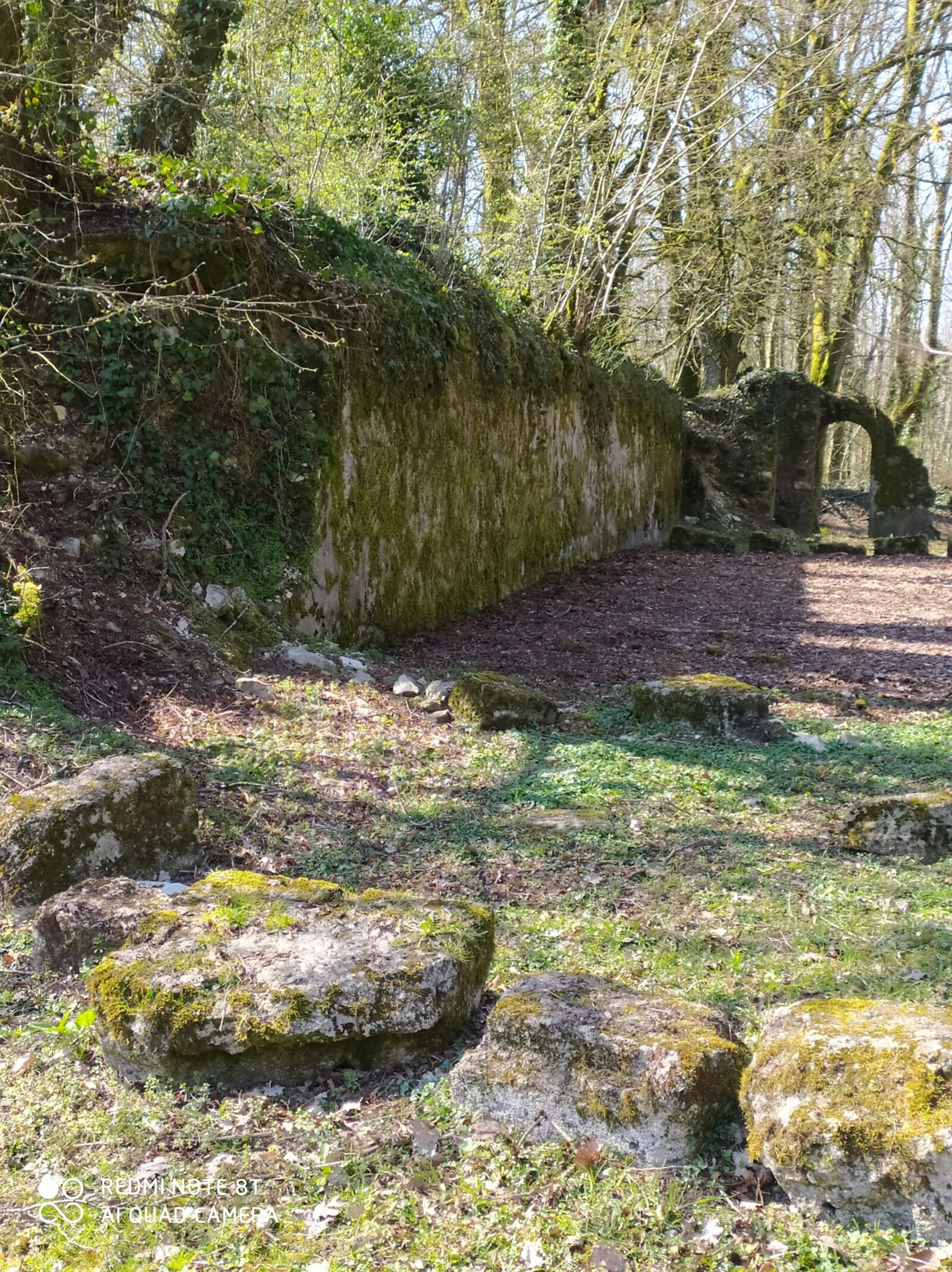 A quoi correspond le mur qui longe la façade nord des ruines de la Collégiale et qui se termine par une porte voûtée bien énigmatique ?